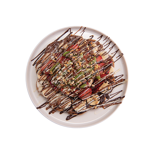 Waffle'a İkinci Katı Çıktık. Sütlü Belçika Çikolatası, Muz, Çilek, Fıstık, Damla Çikolata, Sütlü Çikolata