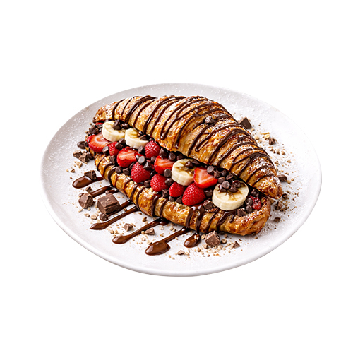 Sütlü/Bitter/Beyaz/Karışık Kruvasan Arasına Belçika Çikolatası Muz Çilek Yer Fıstık ve Üzerine Seçeceğiniz Belçika Çikolata İle Birlikte Servis Edilir.
