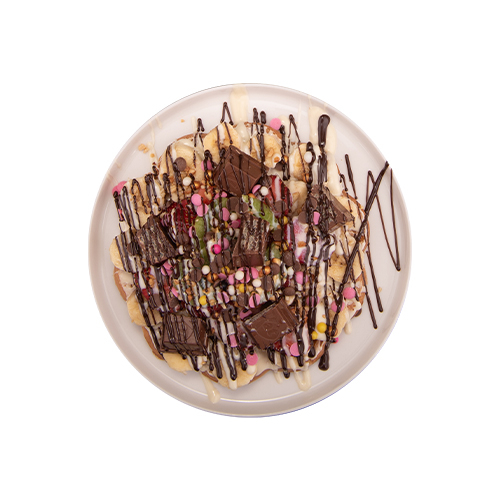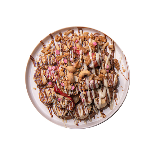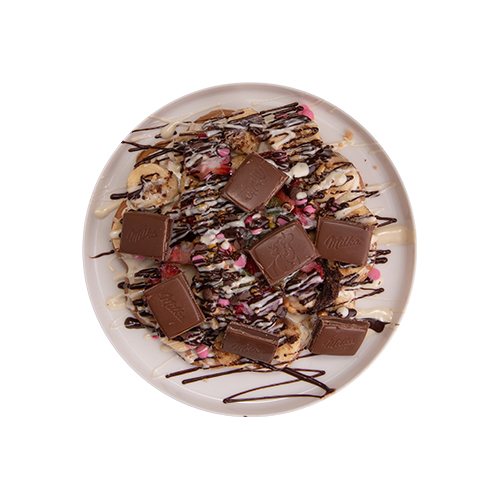 Waffle'a İkinci Katı Çıktık. Sütlü Belçika Çikolatası, Muz, Çilek, Fıstık, Damla Çikolata, Sütlü Çikolata